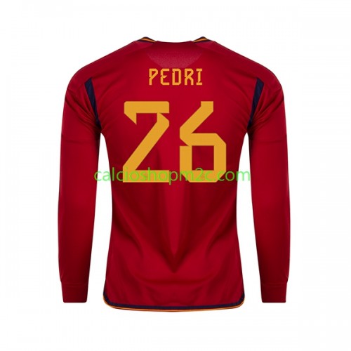 Spagna PEDRI 26 Maglia Prima World Cup 2022 Manica Lunga