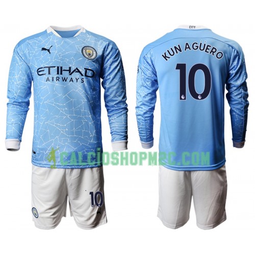 Manchester City Sergio Aguero 10 Bambino Maglia Prima 2020/2021 Manica Lunga (+ Pantaloncini)