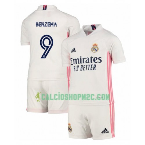 Real Madrid Karim Benzema 9 Bambino Maglia Prima 2020/2021 Manica Corta (+ Pantaloncini)